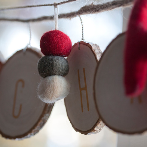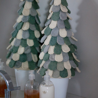 No room is left behind when decorating for Christmas. Our powder room receives special treatment. Here you will find floating vases with reindeer moss and pine cones, felt Christmas trees and copper candles with spruce and rosemary scents.